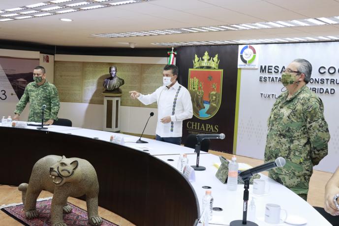 Durante la Mesa de Seguridad, el gobernador Rutilio Escandón Cadenas informó que Chiapas va bien en el combate a la pandemia, muestra de ello es que el comportamiento de la tasa de contagios de COVID-19 se mantiene a la baja, a la fecha no hay ninguna persona hospitalizada en las Clínicas de Atención Respiratoria, y registra más de cinco meses sin ninguna defunción por dicha enfermedad, esto, dijo, es gracias a que la vacuna se ha convertido en un factor fundamental para cuidar la salud y la vida.
