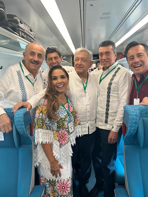 “El Tren Maya está destinado a detonar el crecimiento socioeconómico regional y del país. Reconocemos la voluntad, el deseo y compromiso de este gobierno de la Cuarta Transformación, que lidera el presidente López Obrador, quien es un hombre visionario, patriota y demócrata, que nunca claudicó en el deseo de poner las bases de un mejor futuro para esta región del país”, expresó luego de ser parte del primer e histórico recorrido del ferrocarril.