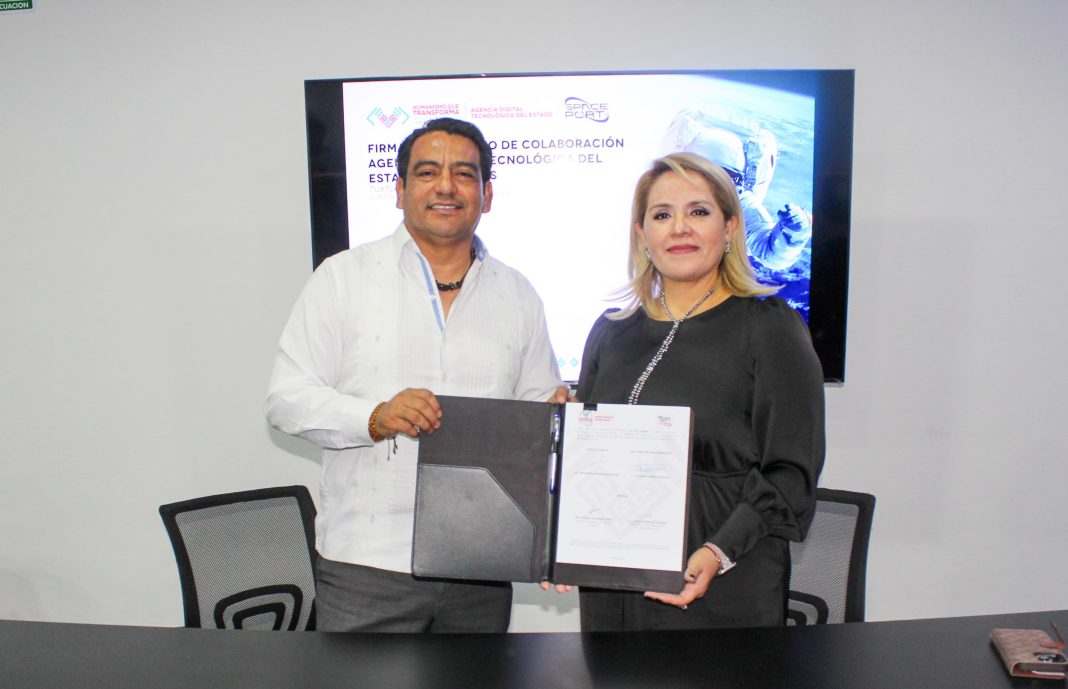 Tuxtla Gutiérrez, Chiapas.- Con el objetivo de fomentar la educación tecnológica y fortalecer el desarrollo de la industria espacial en Chiapas, los titulares de la Agencia Digital Tecnológica de Chiapas (ADTE) y SpacePort MX (SPMX), Jovani Salazar y Catalina Ramírez, respectivamente, formalizaron un convenio de colaboración estratégica en las instalaciones de la Estación Terrena del Planetario Tuxtla.