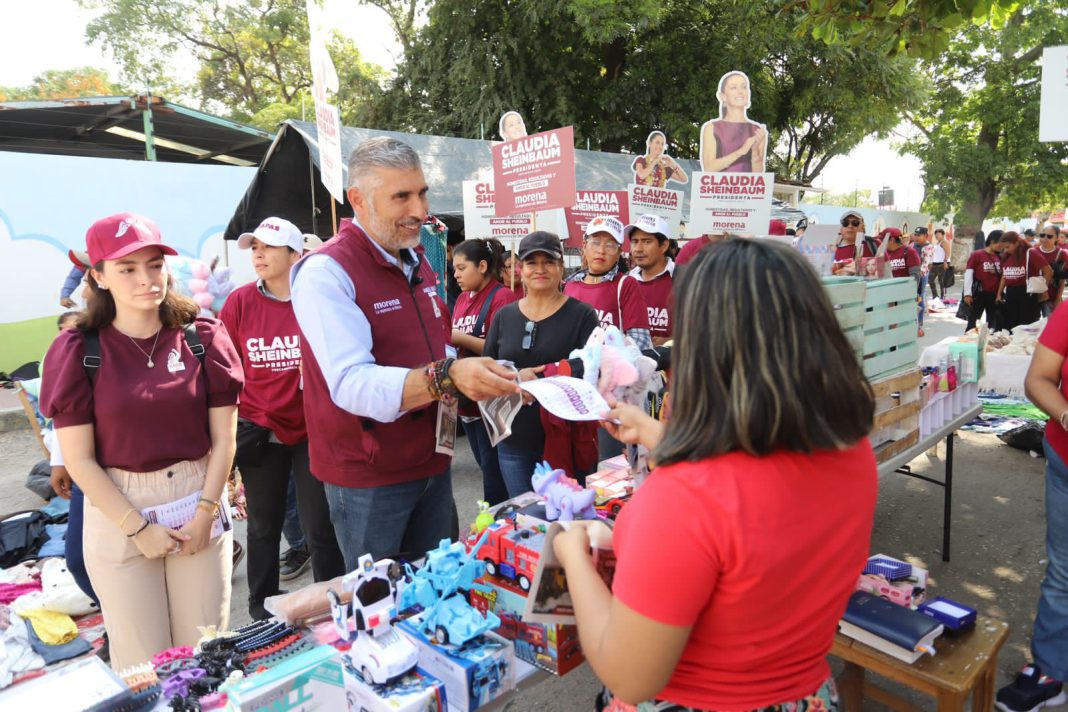 Ángel Torres, consejero político de Morena, realiza recorrido territorial en mercados y principales cruceros de la capital, así como brigadeo casa por casa en colonias, en apoyo a la única precandidata presidencial, Claudia Sheinbaum, para que siga la Cuarta Transformación.