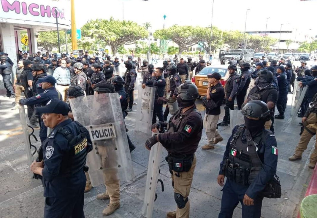 Con total respeto a los derechos humanos y con la finalidad de garantizar el orden y el libre tránsito en la colonia Centro de la capital, policías estatales hicieron presencia disuasiva y replegaron al grupo que realizaba actos vandálicos y bloqueaba la vialidad.