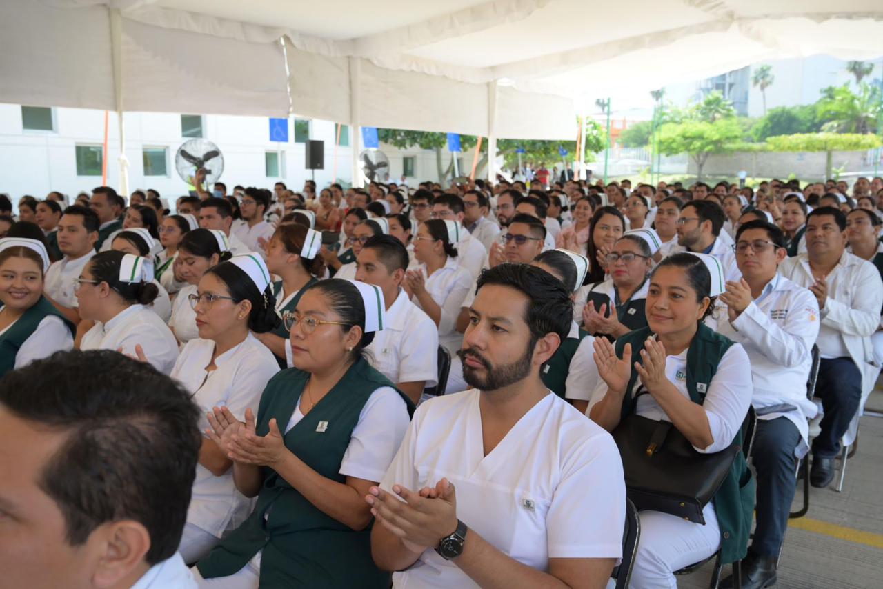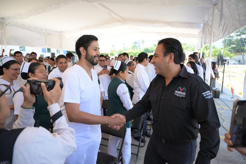 En representación del personal de salud, la enfermera Lineth Daniela Álvarez Ramírez agradeció al gobernador por su compromiso con la salud y el bienestar de la gente, y celebró la oportunidad de seguir honrando su vocación de servicio. “Cada paciente es una oportunidad de marcar la diferencia, de brindar consuelo, fortaleza y humanidad. Hoy me comprometo a cuidar con el corazón para salvar vidas, y a seguir trabajando con empatía, entrega y respeto para contribuir a un Chiapas más sano, más justo y más humano”, expresó.