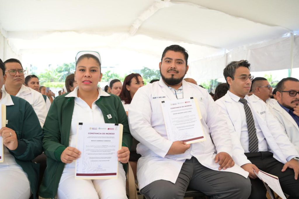 Por su parte, Alejandro Svarch Pérez informó que a nivel nacional se contrataron más de mil 300 especialistas y 2 mil 200 enfermeras y enfermeros, de los cuales se incorporan en Chiapas 145 enfermeras y enfermeros y 97 médicas y médicos especializados en áreas como anestesiología, cirugía general, medicina interna, geriatría, neurocirugía, pediatría, angiología y cirugía vascular.