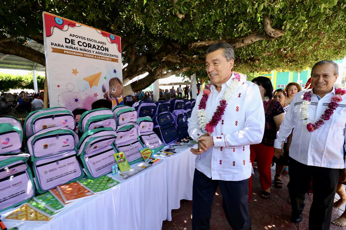 Desde el municipio de Acala, el gobernador Rutilio Escandón Cadenas encabezó el arranque de entrega de apoyos escolares del Programa Todos a la Escuela, que en este ciclo escolar 2023-2024 beneficiará a más de 13 mil niñas, niños y adolescentes, donde destacó que el deseo es que la niñez y juventud chiapaneca, sobre todo quienes se encuentran en condiciones de mayor vulnerabilidad, cuenten con las herramientas para realizar sus actividades escolares.