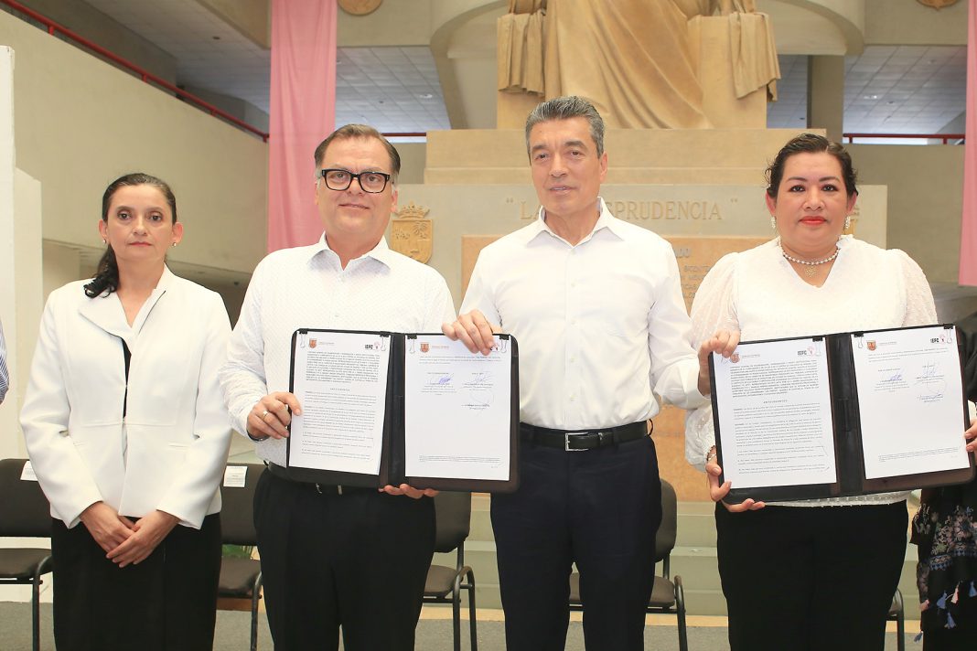 • El gobernador fue testigo del convenio de colaboración entre el Instituto de Elecciones y Participación Ciudadana y el Poder Judicial del Estado