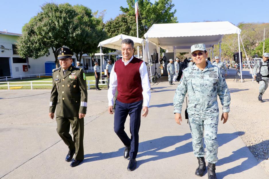 “Con profundo respeto a la Guardia Nacional, es un honor presenciar esta toma de protesta, relevo que se lleva a cabo entre hombres y mujeres ejemplares formados con disciplina para mantener una visión permanente por la defensa de la seguridad pública”, expresó al destacar la trayectoria del nuevo mando militar, quien con su experiencia, lealtad y sentido del deber serán pilares fundamentales para dar continuidad a las acciones que se implementan en la materia.