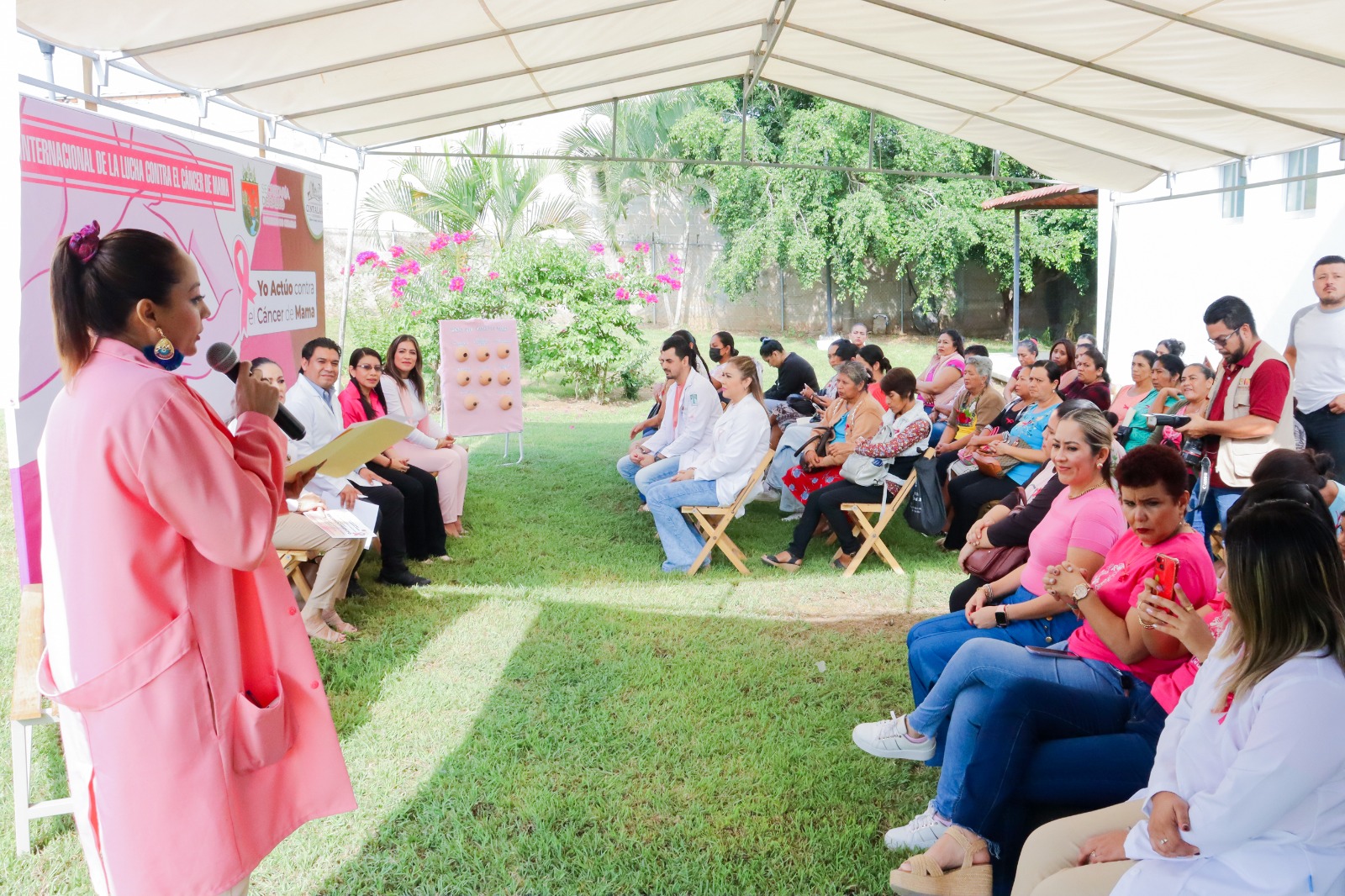 “Este Gobierno Municipal, ha puesto total interés en el tema de la salud pública de los cintalapanecos, por ello; periódicamente realizamos actividades con beneficios directos a la población en general y hoy nos sumamos a la lucha de la terrible enfermedad de cáncer que afecta en particular a las mujeres”, dijo el Presidente Municipal durante un acto público.