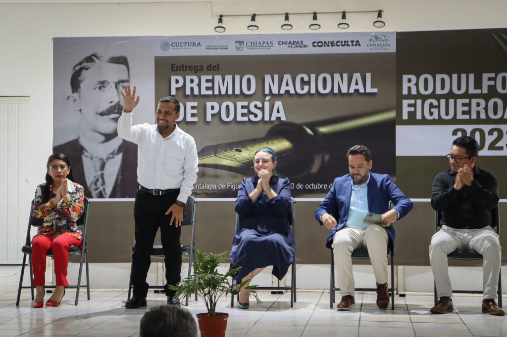 Cintalapa.- El Ayuntamiento de Cintalapa y El Consejo Estatal para las Culturas y las Artes de Chiapas; entregaron el Premio Nacional de Poesía “Rodulfo Figueroa Esquinca 2023, al poeta Christian Jonathan Peña Rosales.
