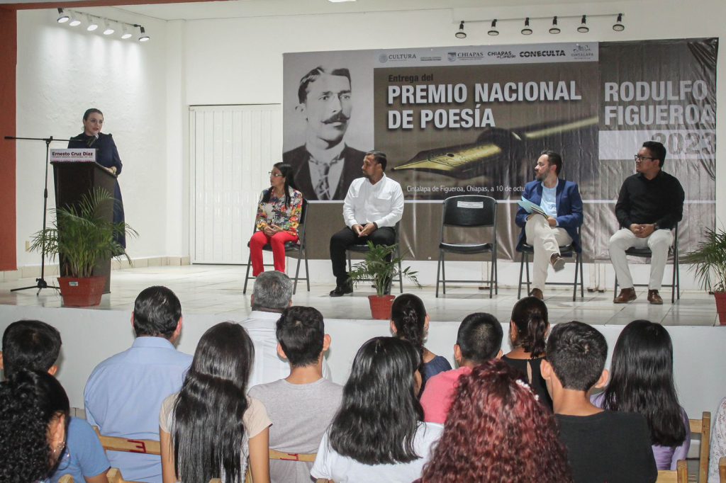 En representación del Gobierno Municipal, Ernesto Cruz Díaz; encabezó el acto de premiación y destacó la importante vida y obra del Doctor y Poeta, Rodulfo Figueroa Esquinca originario del municipio de Cintalapa al que le diera su apellido.