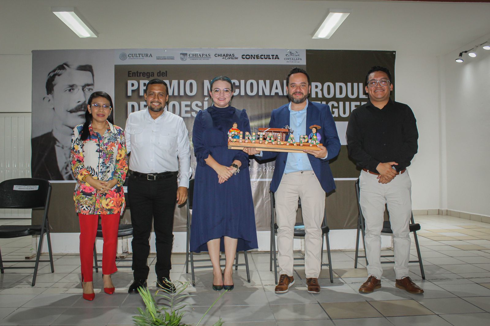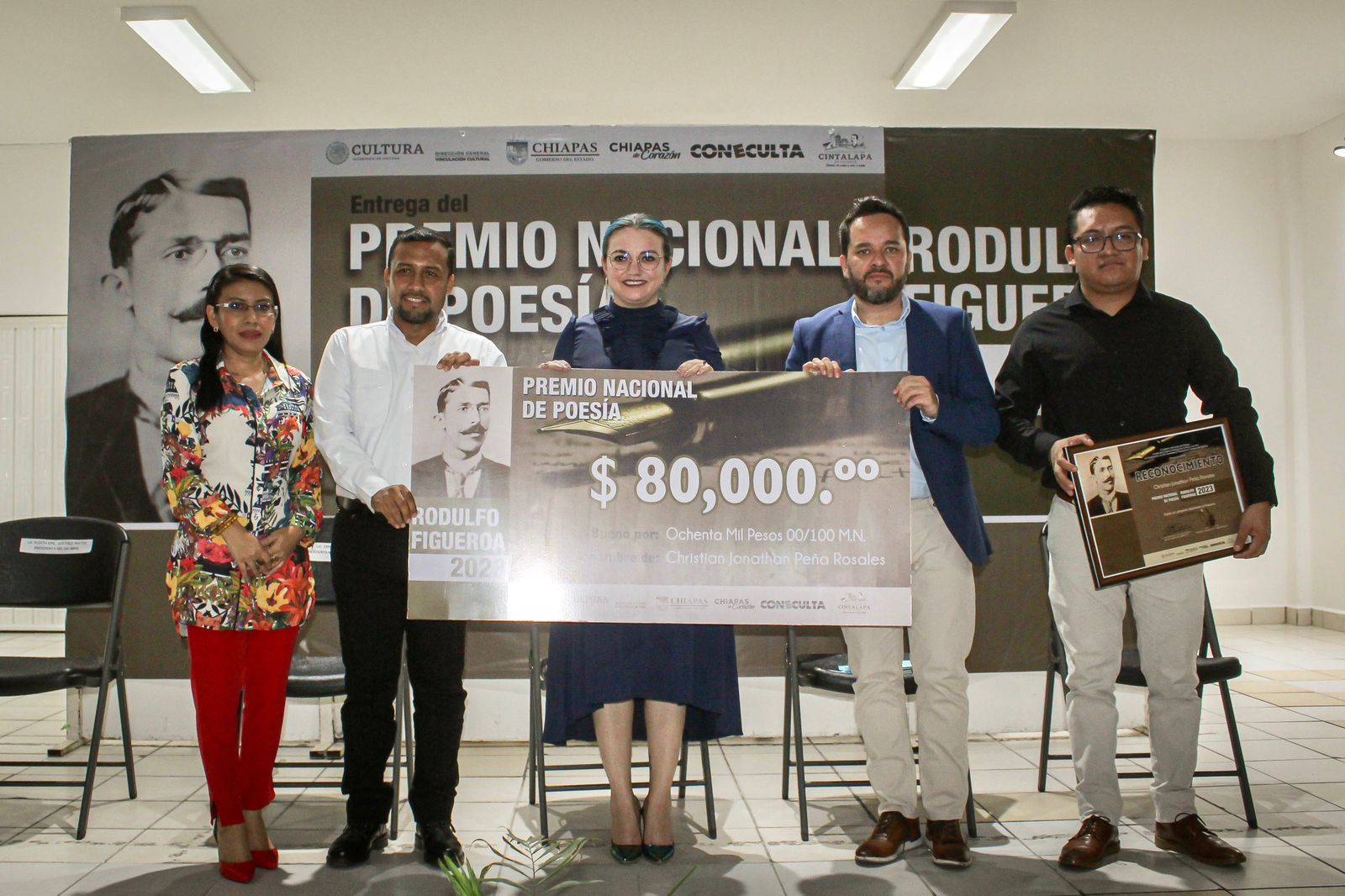 Cintalapa.- El Ayuntamiento de Cintalapa y El Consejo Estatal para las Culturas y las Artes de Chiapas; entregaron el Premio Nacional de Poesía “Rodulfo Figueroa Esquinca 2023, al poeta Christian Jonathan Peña Rosales.