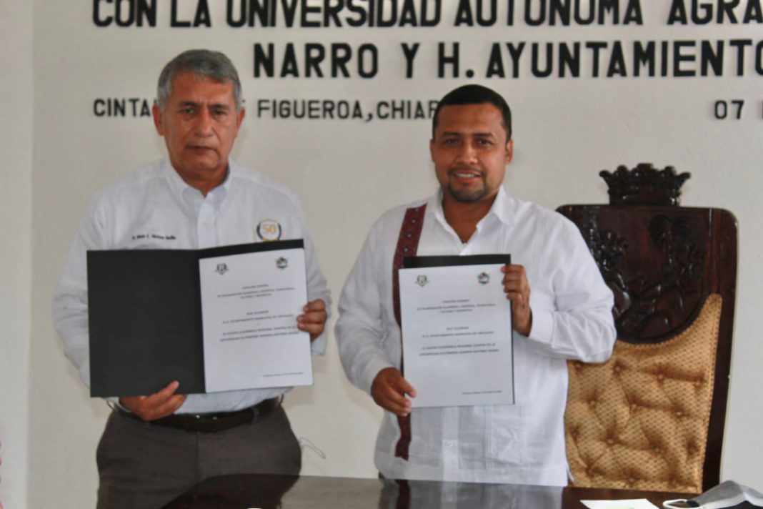 Cintalapa.- La signación de la Firma de Colaboración Institucional entre el Gobierno de Cintalapa y la Universidad Autónoma Agraria Antonio Narro (UAAAN), sin duda será un parte aguas para que jóvenes cintalapanecos aspirantes a concluir una Carrera Profesional, puedan terminarla con todos los méritos en esta reconocida y prestigiada Casa de Estudios.