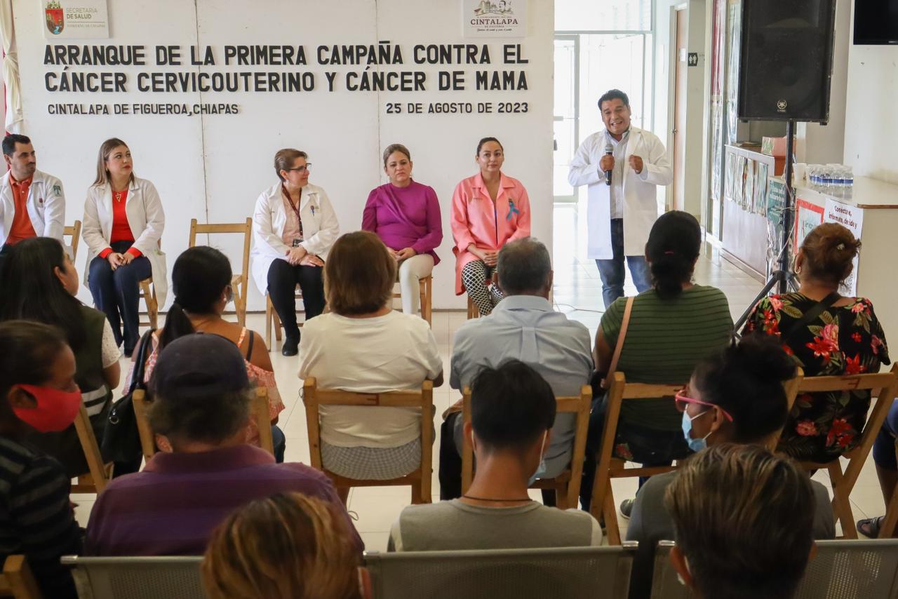 Cintalapa.- Con la estrecha colaboración entre la Secretaría Estatal y Municipal de Salud, el Ayuntamiento de Cintalapa presidido por Ernesto Cruz Díaz; puso en marcha la Primera Campaña de Detección de Cáncer Cervicouterino y de Mama.