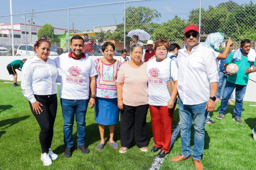 Ante los vecinos, deportistas y ciudadanos de la región, Cruz Díaz; hizo la entrega física del inmueble consistente en la construcción la cancha de fútbol de 35 x 16 metros con pasto sintético.