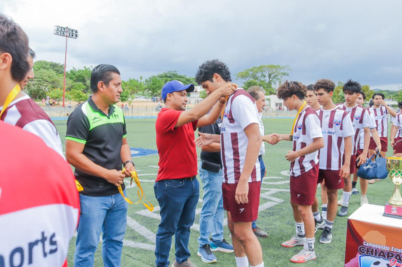 Acompañado por el Presidente de la Asociación de Fútbol de Chiapas A. C. (AFUCHAC) y Director Operativo de la Copa Telmex Telcel 2023 en Chiapas, José Isabel Tasias Gallegos; Cruz Díaz, felicitó a los campeones y los exhortó a que defiendan con entrega y dignidad a nuestro estado de Chiapas en la etapa nacional.