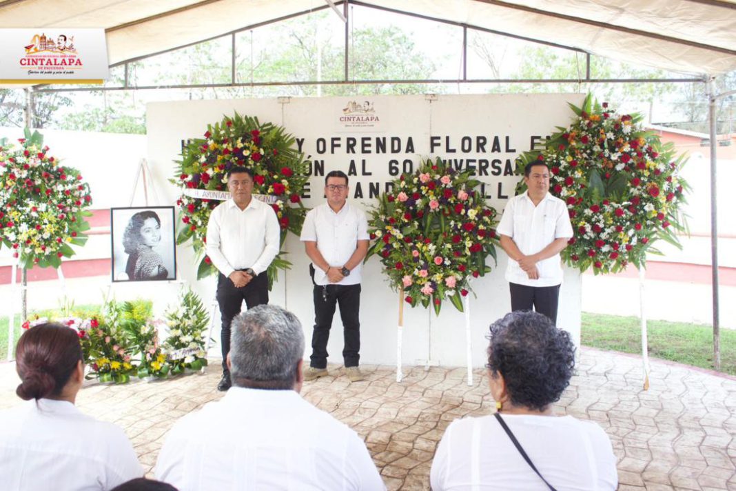 Cintalapa.- A través de una Ofrenda Floral y Guardia de Honor, el Ayuntamiento Municipal de Cintalapa; rindió merecido homenaje por el 60 Aniversario Luctuoso de la Actriz cintalapaneca “Amanda del Llano Serrano”.
