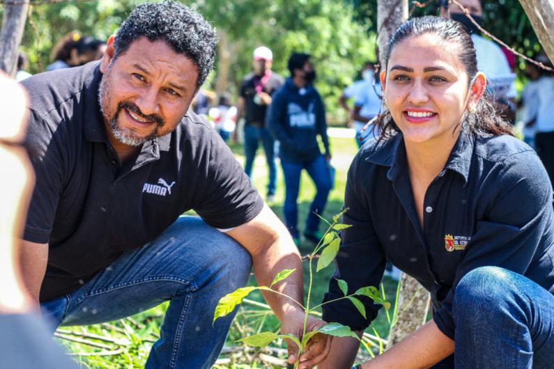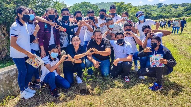 Jiquipilas, Chiapas. – Creando una cultura juvenil ecológica y motivando a las juventudes a sumarse a iniciativas sustentables, el alcalde César Hugo Lázaro Rodríguez y la directora del instituto de la juventud del estado de Chiapas Getsemaní Moreno Martínez, dieron inicio a la campaña juventudes 2030 sembrando conciencia, en la que donaron y reforestaron un total de 1500 árboles (primavera) en el COBACH 77 del ejido José María Pino Suarez.