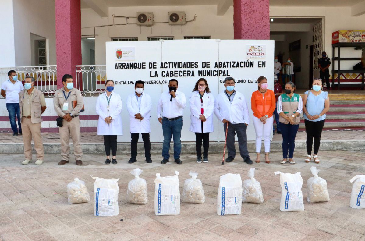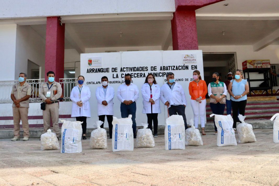 Cintalapa.- Con el respaldo de la Secretaría de Salud Estatal y la sociedad cintalapaneca, el Gobierno Municipal encabezado por Ernesto Cruz Díaz; dio el banderazo del “Arranque de Actividades de Abatización en la Cabecera Municipal”.