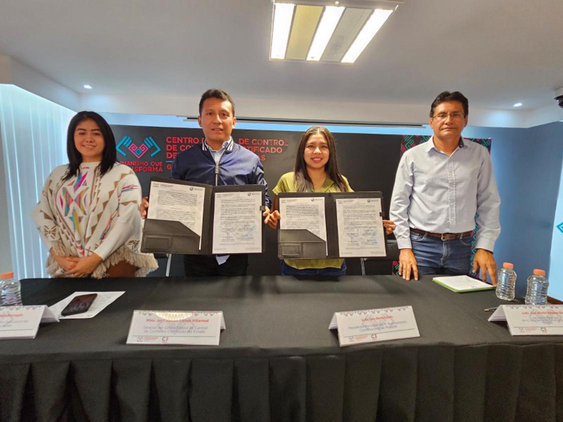 Tuxtla Gutiérrez, Chiapas.— El director general del Centro Estatal de Control de Confianza Certificado (CECCC), José Alonso Llaven Villarreal, firmó un importante convenio de coordinación con Sara Barrera Solís, presidenta municipal de Mazatán, con el objetivo de recuperar la confianza de la ciudadanía mediante la evaluación y certificación profesional de los cuerpos policiales del municipio.