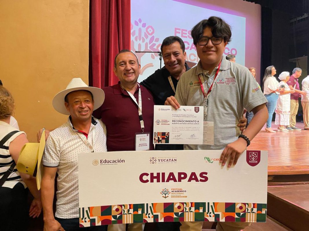 Valladolid, Yucatán.- El Colegio de Estudios Científicos y Tecnológicos del Estado de Chiapas (Cecytech) celebra el logro de dos estudiantes del Plantel 08 La Trinitaria, quienes obtuvieron el segundo lugar nacional en el Festival Nacional Académico 2025, realizado en la ciudad de Valladolid, Yucatán.
