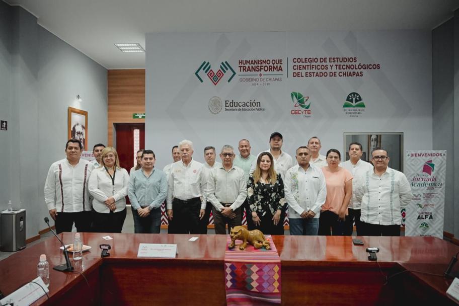 Tuxtla Gutiérrez, Chiapas.- Con la participación de mil 503 asistentes virtuales, entre docentes y directivos, de los planteles del Colegio de Estudios Científicos y Tecnológicos del Estado de Chiapas (Cecytech) y del Telebachillerato Comunitario (TBC), se llevó a cabo la Primera Jornada Académica 2025, un espacio de intercambio y fortalecimiento pedagógico en favor de la educación media superior en el estado, con el propósito de continuar impulsando estrategias innovadoras que mejoren la enseñanza y el aprendizaje en las aulas.