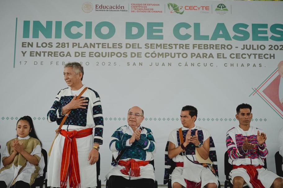 San Juan Cancuc, Chiapas.- Con gran entusiasmo, el Colegio de Estudios Científicos y Tecnológicos del Estado de Chiapas (Cecytech) y el Telebachillerato Comunitario (TBC) iniciaron el semestre febrero-julio 2025 en sus 281 planteles, reafirmando el compromiso con la educación de nivel medio superior; asimismo, se realizó la entrega de equipos de cómputo para fortalecer la infraestructura tecnológica y mejorar la calidad del aprendizaje.