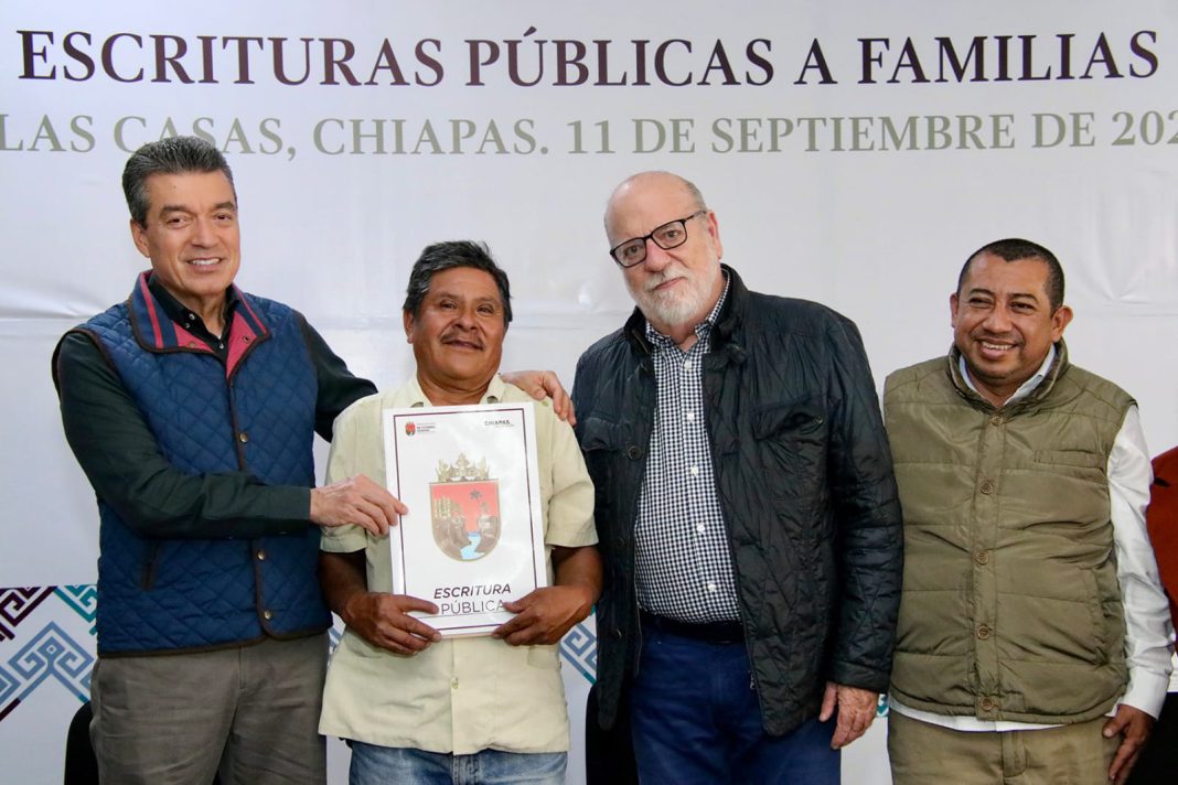 La entrega se llevó a cabo de manera directas a las y los beneficiarios en la ciudad de San Cristóbal de las Casas, sumándose a las más de 5 mil familias que han asegurado su patrimonio a través del Programa de Regularización de la Tenencia de la Tierra, que impulsa el Ejecutivo del Estado y se realiza a través de un trabajo interinstitucional.