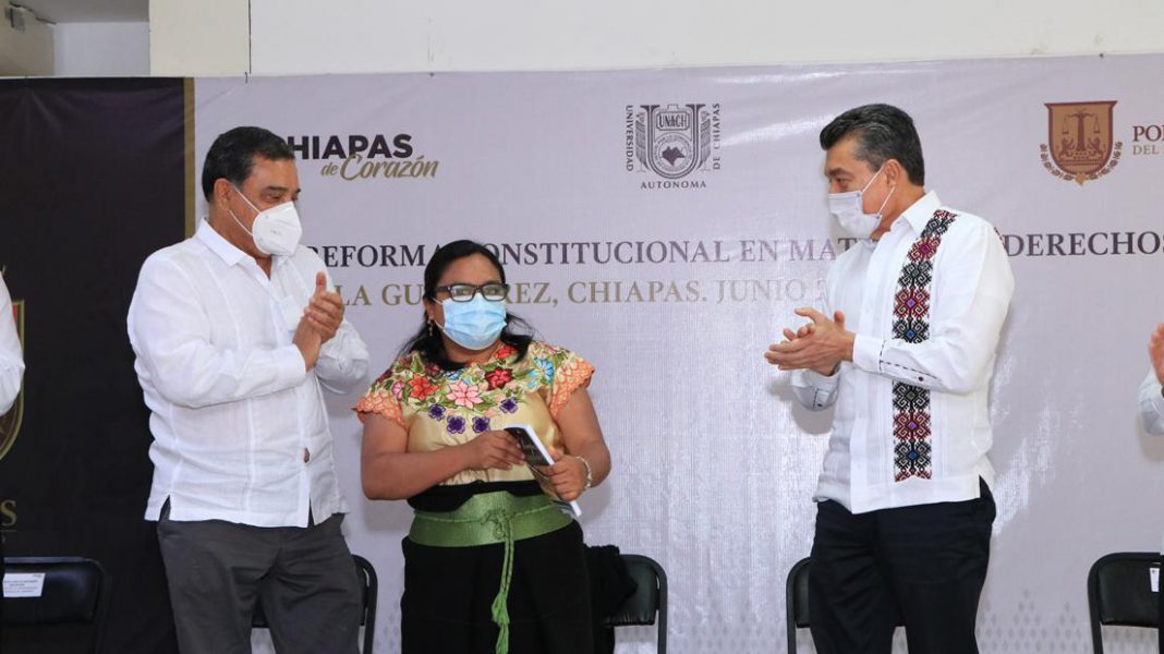 Subrayó que Chiapas avanza con pasos firmes en materia de derechos humanos, ejemplo de ello es el cumplimiento del principio de la igualdad de género, de forma auténtica y sin simulaciones, tanto en temas de representación política como en la participación en espacios de organismos e instituciones de los tres Poderes del Estado, aunado al impulso y consolidación de iniciativas con perspectiva de género.
