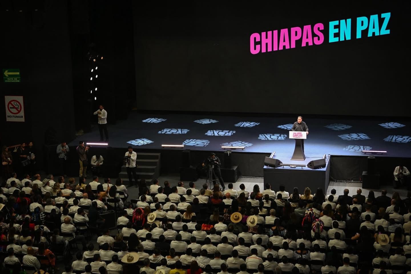 “Que lo sepa el mundo: Chiapas ha despertado y despierta para cumplir su destino, ser el gigante del sur al que está llamado. Chiapas estará de pie y jamás volverá a inclinarse; nunca verán a nuestras comunidades de rodillas, bloqueando caminos por causa de la delincuencia. Con fe en la justicia y fuerza en el alma, seguiremos cumpliéndole a Chiapas. Gracias, queridas paisanas y paisanos, por su apoyo, amor y cariño. Gracias, Chiapas. Seguiremos cumpliendo. ¡Que viva Chiapas!”, concluyó.