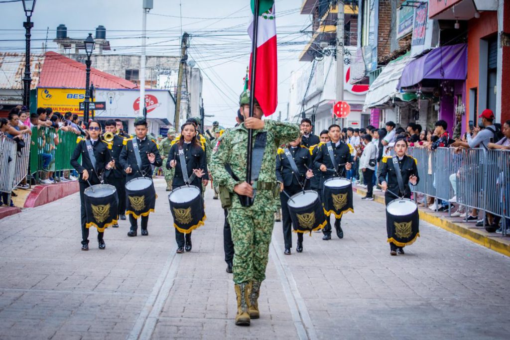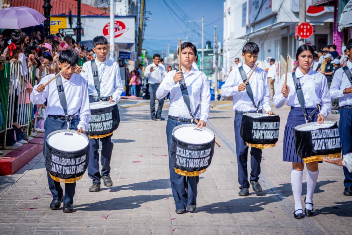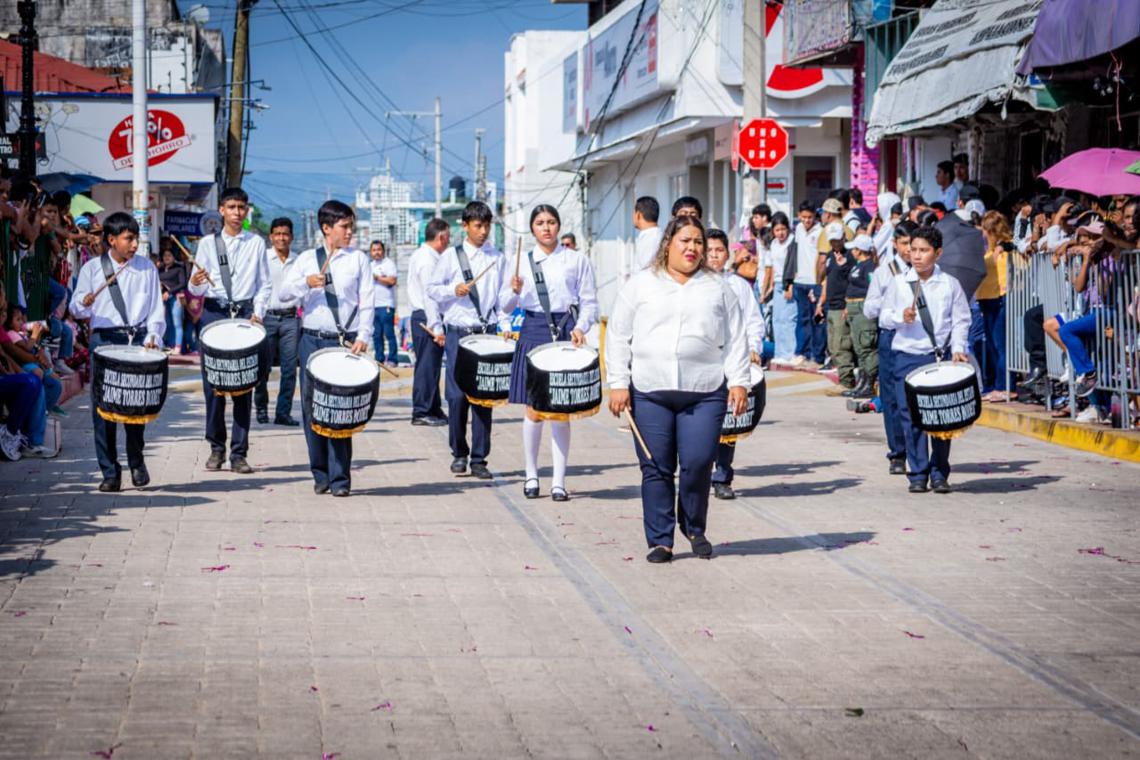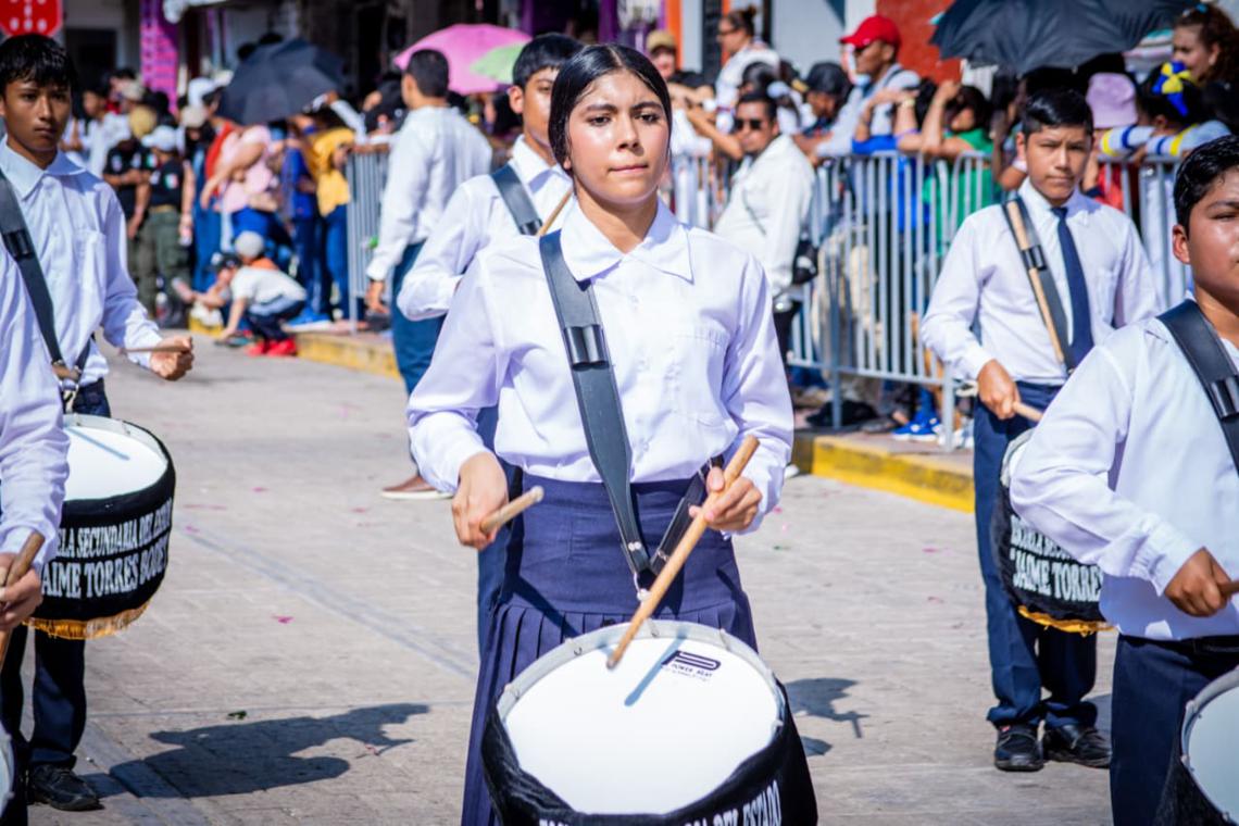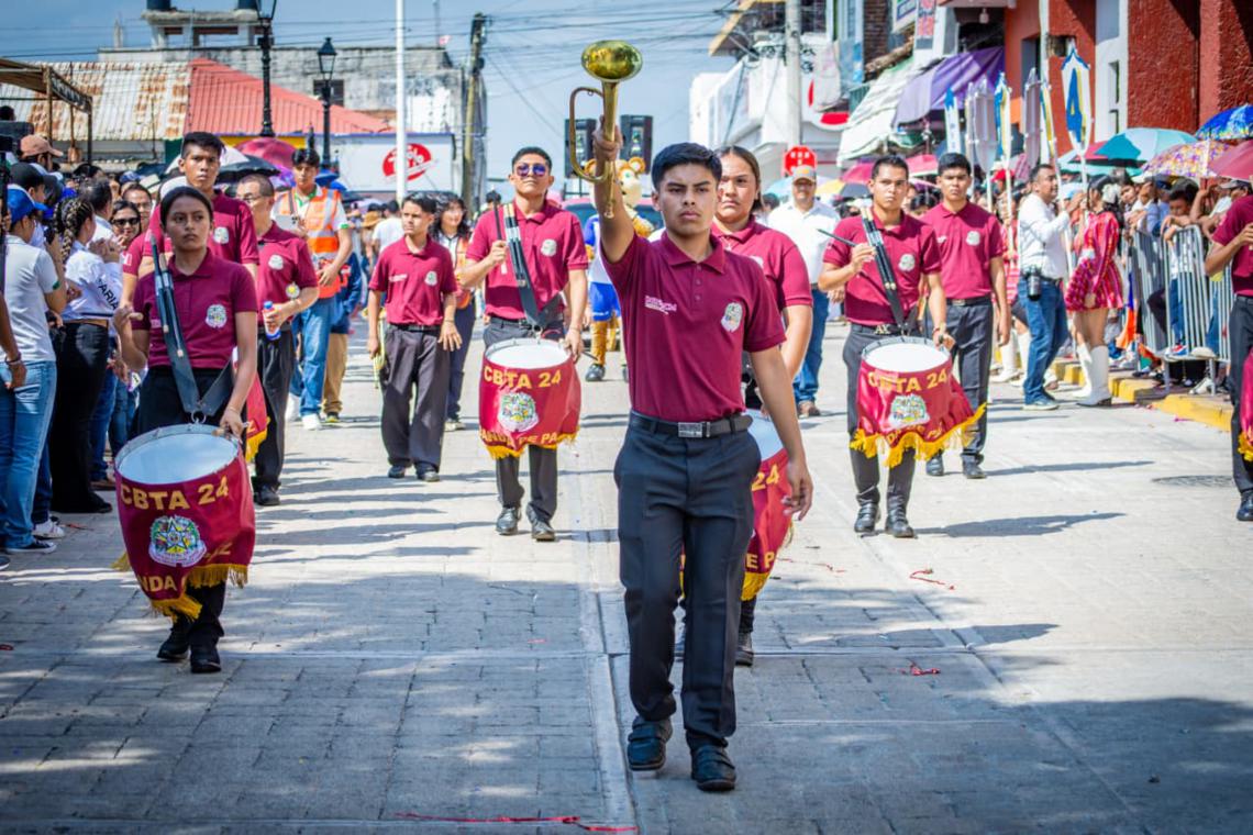 El evento conmemorativo contó con la participación de estudiantes y docentes de primarias, secundarias, preparatorias y escuelas de nivel superior, quienes desfilaron con gran entusiasmo, mostrando disciplina y compromiso cívico. Escoltas, bandas de paz, tablas rítmicas y contingentes deportivos dieron colorido al recorrido, que atrajo a cientos de familias y habitantes del municipio.