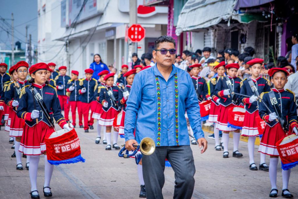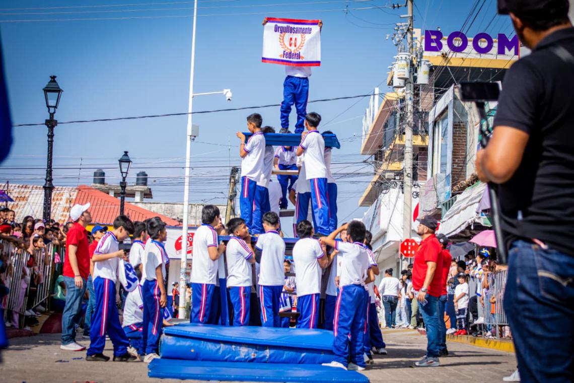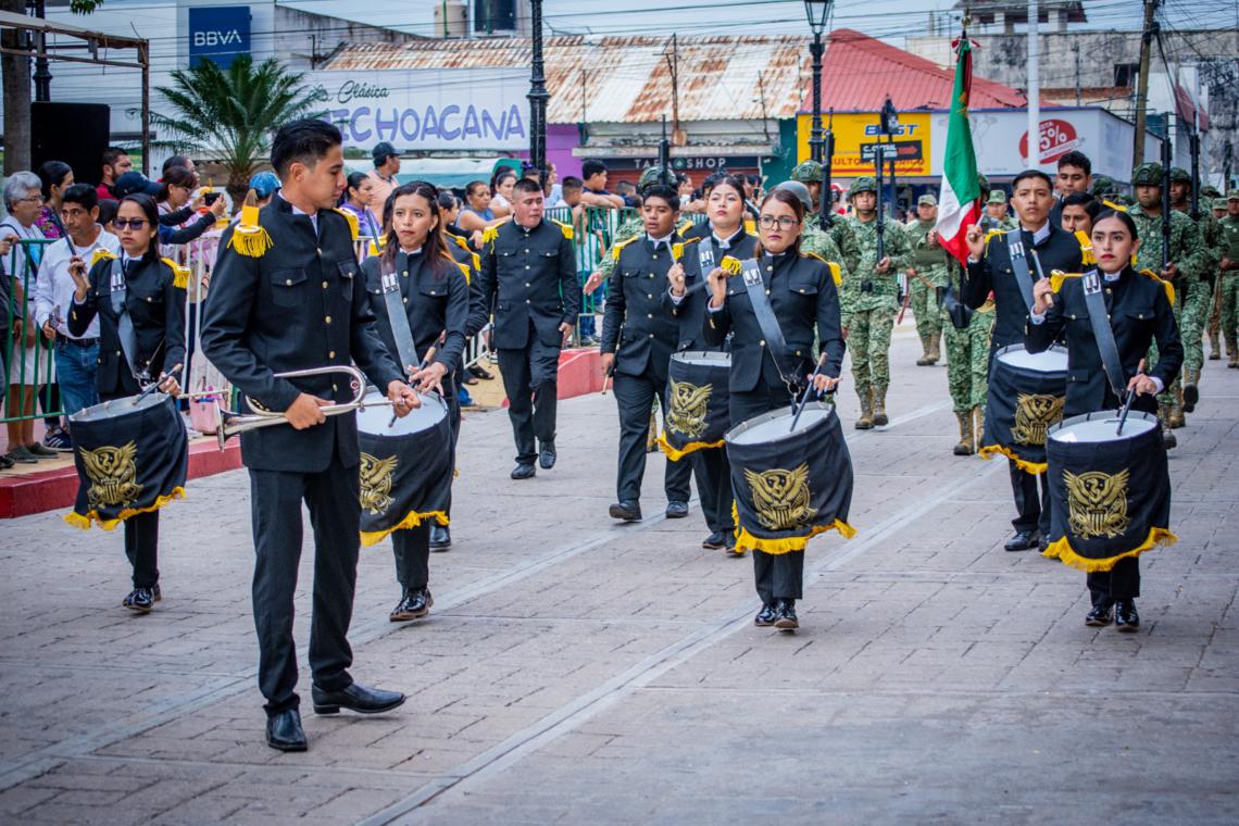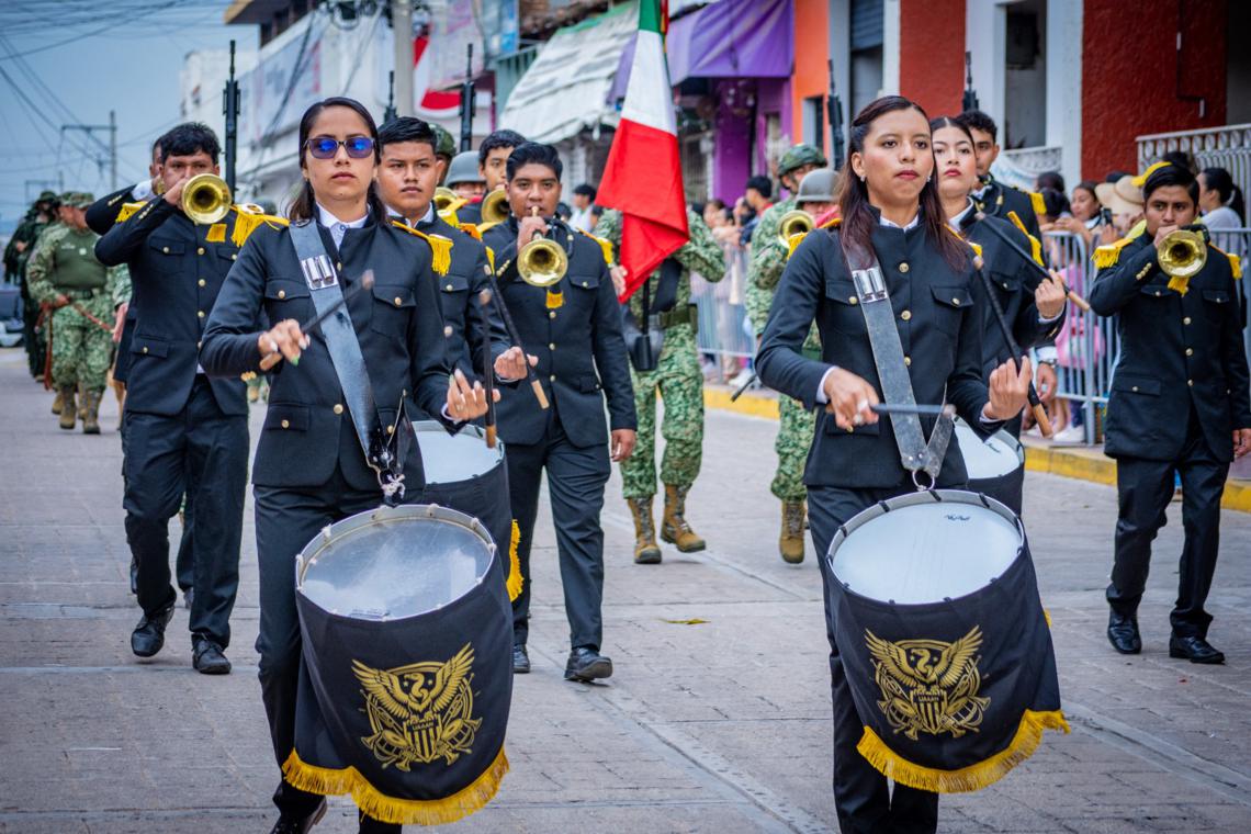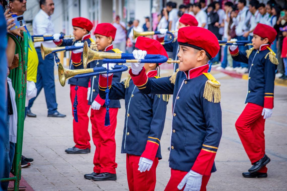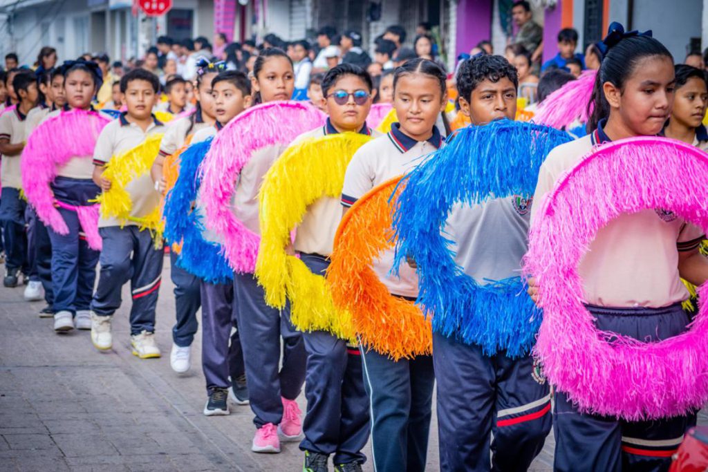 El evento conmemorativo contó con la participación de estudiantes y docentes de primarias, secundarias, preparatorias y escuelas de nivel superior, quienes desfilaron con gran entusiasmo, mostrando disciplina y compromiso cívico. Escoltas, bandas de paz, tablas rítmicas y contingentes deportivos dieron colorido al recorrido, que atrajo a cientos de familias y habitantes del municipio.