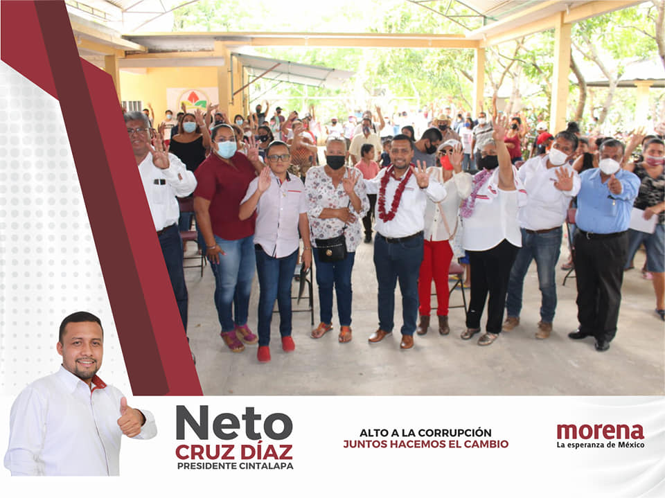 Por ello conscientes de que en Cintalapa, se necesita un cambio verdadero, han manifestado total apoyo y compromiso por el proyecto que hoy representa morena con Ernesto “Neto” Cruz Díaz, porque solo hay dos opciones, elegir a los mismos corruptos o votar por una esperanza y un cambio verdadero.