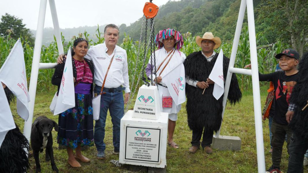 “Escuchar con humildad y responder con resultados es el compromiso del gobernador Eduardo Ramírez con los pueblos de Chiapas”, afirmó Francisco Chacón, secretario del Humanismo, durante la colocación de la primera piedra del sistema de agua por gravedad en la localidad de Slumka, municipio de Aldama.
