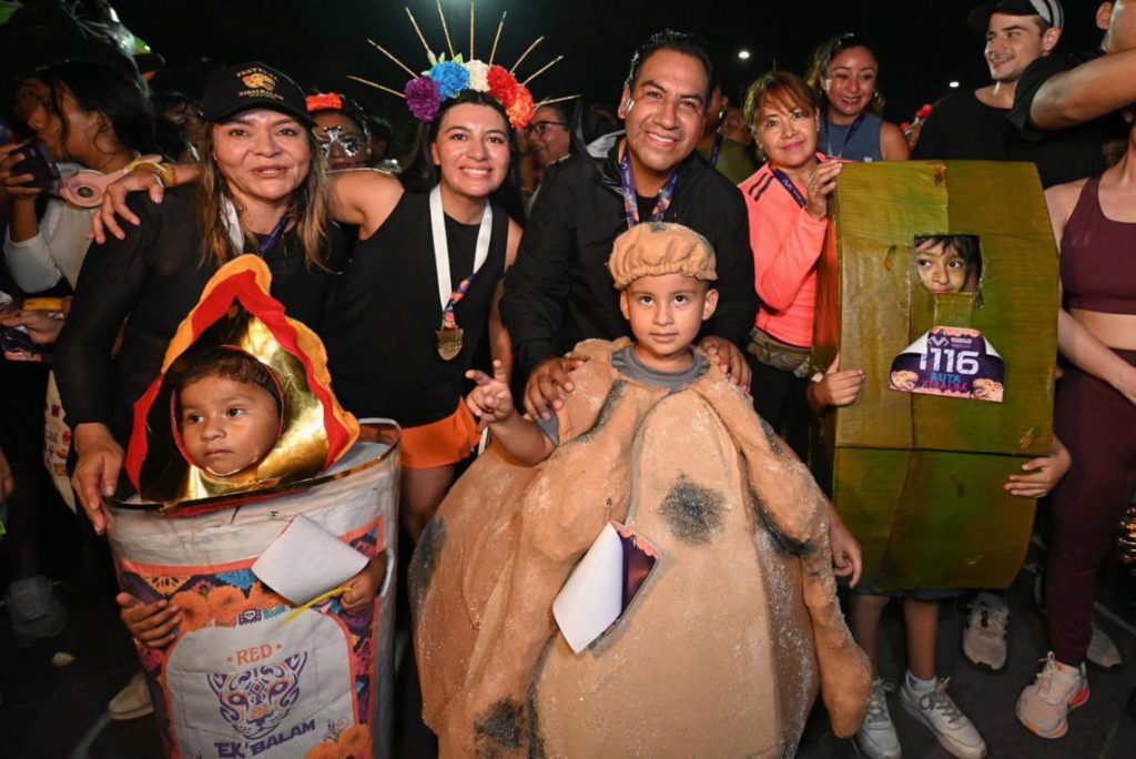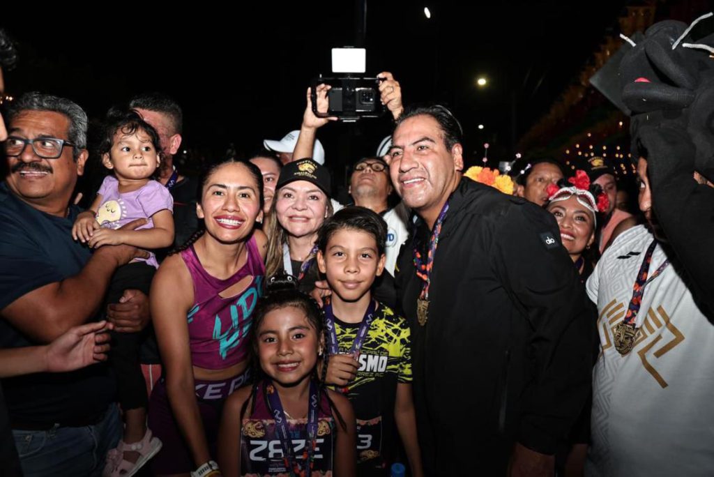 El gobernador Eduardo Ramírez Aguilar, acompañado de su esposa Sofía Espinoza Abarca y su hija Yazmín Ramírez Espinoza, participó en la Ruta Xibalbá 5K: carrera con alma, color y raíces, un encuentro deportivo y de convivencia ciudadana que reunió a más de 10 mil participantes en un ambiente lleno de arte, cultura y tradición, como parte del Festival Xibalbalam.