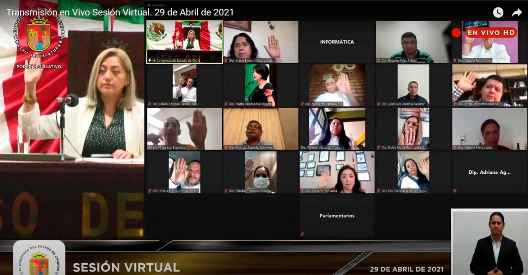 Tuxtla Gutiérrez, Chiapas a 29 de abril del 2021. En sesión virtual realizada a través de la plataforma digital del Congreso del Estado, la Mesa Directiva turnó a las comisiones unidas de Vigilancia y Hacienda -para su estudio y dictamen- el oficio signado por el doctor Rutilio Escandón Cadenas, gobernador del estado de Chiapas, por medio del cual remite a esta soberanía popular, la Cuenta Pública Estatal correspondiente al Ejercicio 2020.