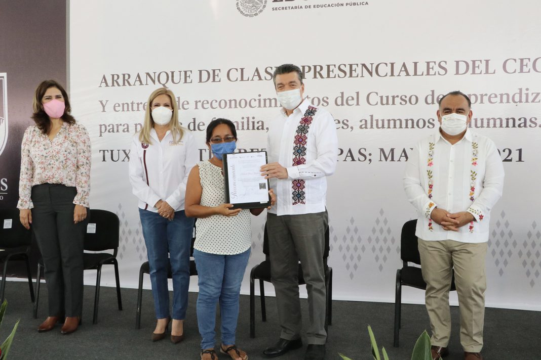 A su vez, la Dirección General del Cecyte Chiapas aseguró que el inicio de las actividades académicas se aplicará bajo los protocolos sanitarios correspondientes, al tiempo de destacar la entrega de los mil 840 reconocimientos a padres y madres de familia y estudiantes que formaron parte del proyecto Generación de Aprendizajes, mediante la gestión de emociones con aportaciones de las neurociencias, que se aplicó en los 46 planteles de este subsistema.