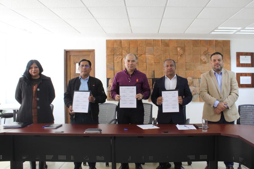 En la firma del convenio de colaboración interinstitucional participaron la encargada de la Coordinación de Planeación de la Unich, Carolina Hernández Alfonzo; el secretario administrativo de la universidad, Oswaldo Henrry Domínguez Córdova; y el abogado general, Marco Aurelio Huete Meza.
