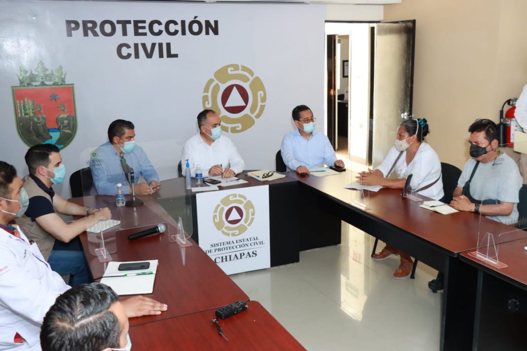 Las secretarías General de Gobierno, de Protección Civil, de Salud y de Hacienda, en coordinación con representantes de la Delegación de Programas Integrales de Desarrollo del Gobierno Federal en Chiapas, realizaron una mesa de atención, por instrucciones del gobernador Rutilio Escandón Cadenas, con un trato digno y contando con la presencia de la Comisión Estatal de los Derechos Humanos (CEDH).