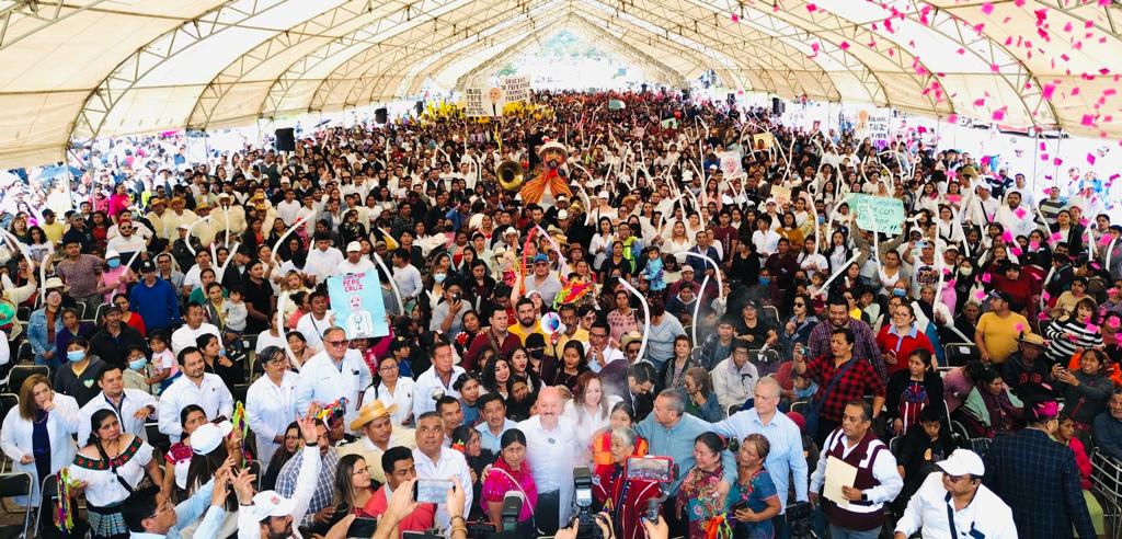 Ante población en general y pueblos originarios, enfatizó que en la Región Altos Tsotsil-Tseltal se han impulsado diferentes beneficios, sobre todo para las comunidades indígenas, como la red de 15 casas maternas, que son espacios interculturales que han abonado a disminuir la muerte materna, un indicador que se está atendiendo con acciones integrales.