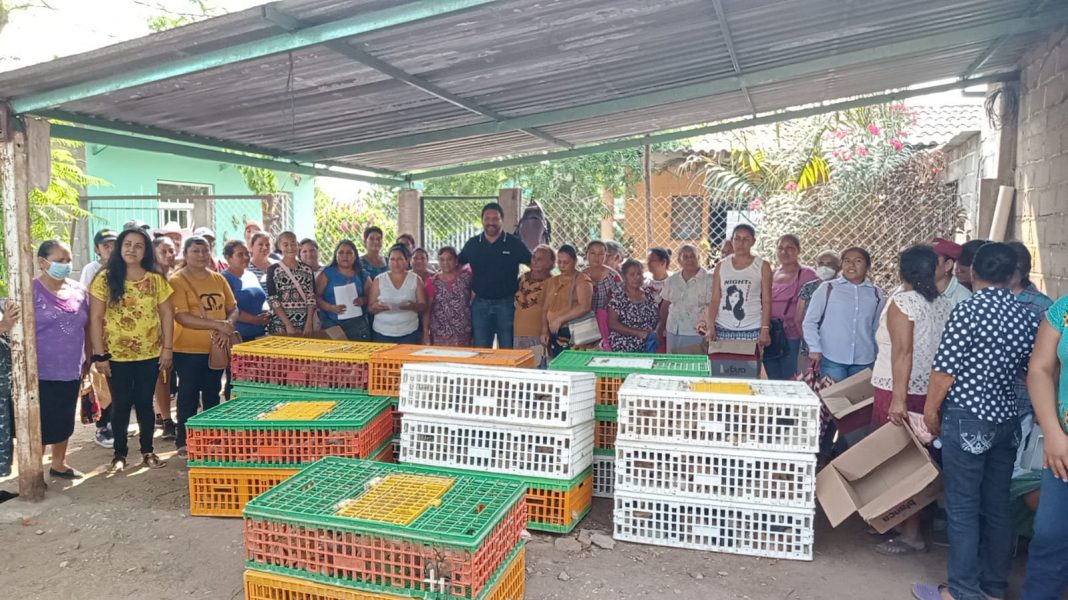 Jiquipilas, Chiapas. – El alcalde César Hugo Lázaro Rodríguez realizó la entrega de paquetes de aves de traspatio a familias de la ranchería Nueva Francia.