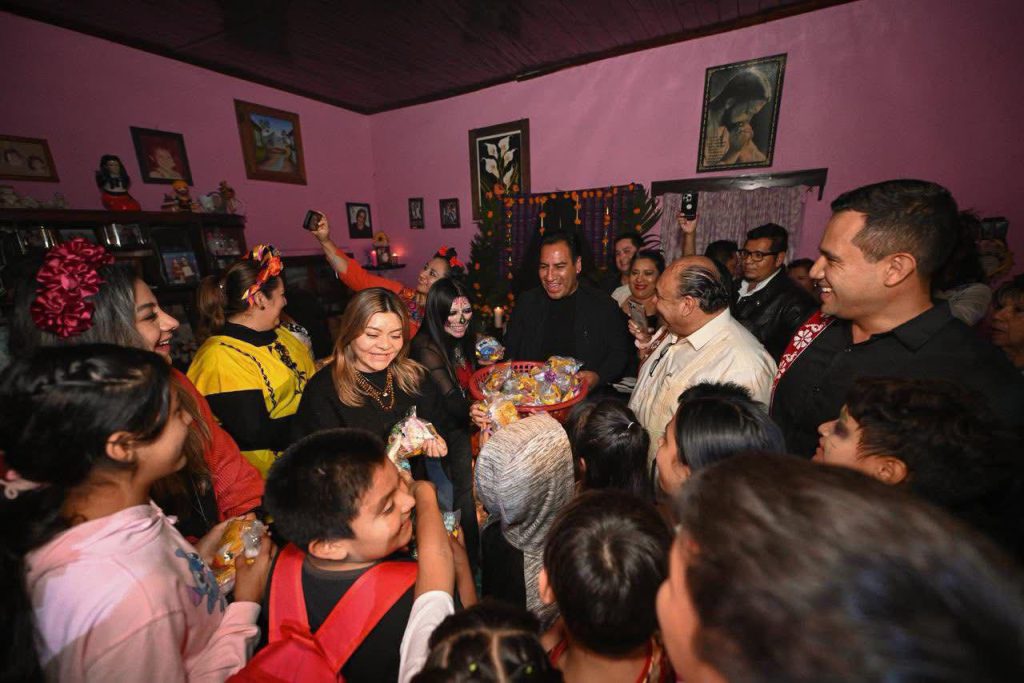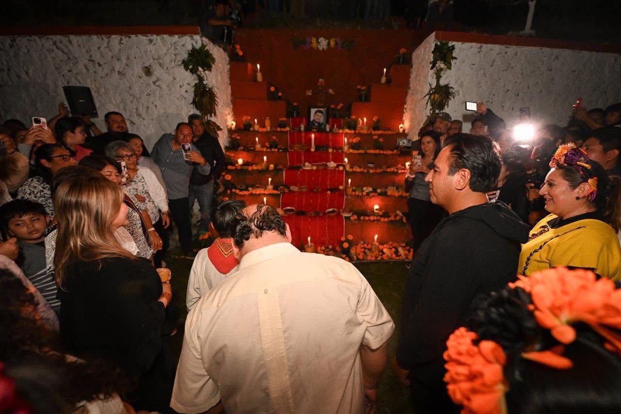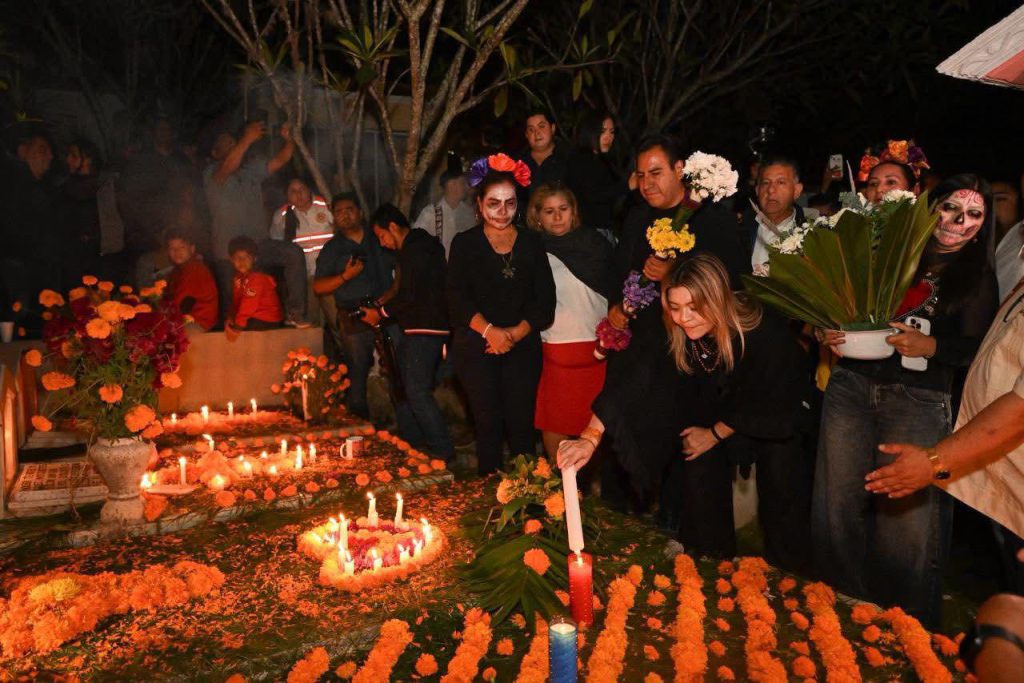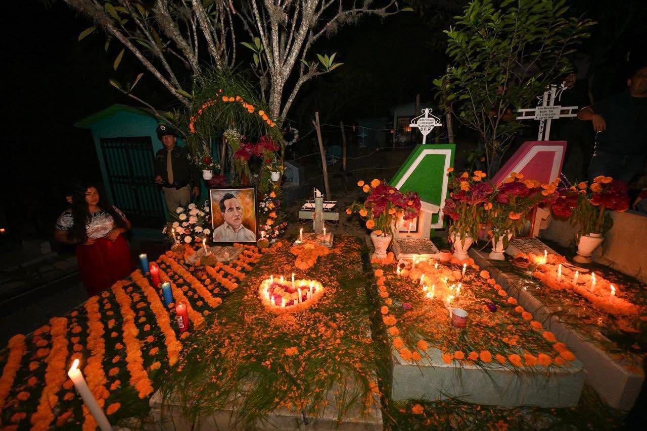 El gobernador Eduardo Ramírez Aguilar visitó el Panteón Municipal de Copainalá para admirar los altares representativos de la cultura zoque y acompañar a las familias que participaban en la tradicional velada de Todos Santos para esperar la llegada de las almas de sus seres queridos.