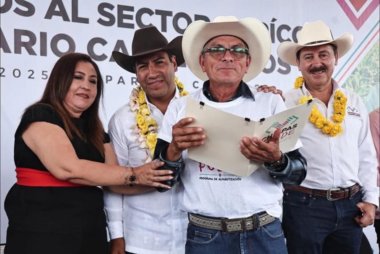 n nombre de las y los beneficiarios de Villaflores, Gisell Alejandra Molina Molina calificó a Eduardo Ramírez como un gobernador que cumple su palabra, escucha a su pueblo y comprende el valor del trabajo en el campo. Asimismo, María Herlinda López Hernández, beneficiaria de la Beca Rosario Castellanos en El Parral, expresó su gratitud al gobierno estatal por el Programa Chiapas Puede, gracias al cual ella y su esposo, y muchas personas más, han aprendido a leer y escribir.