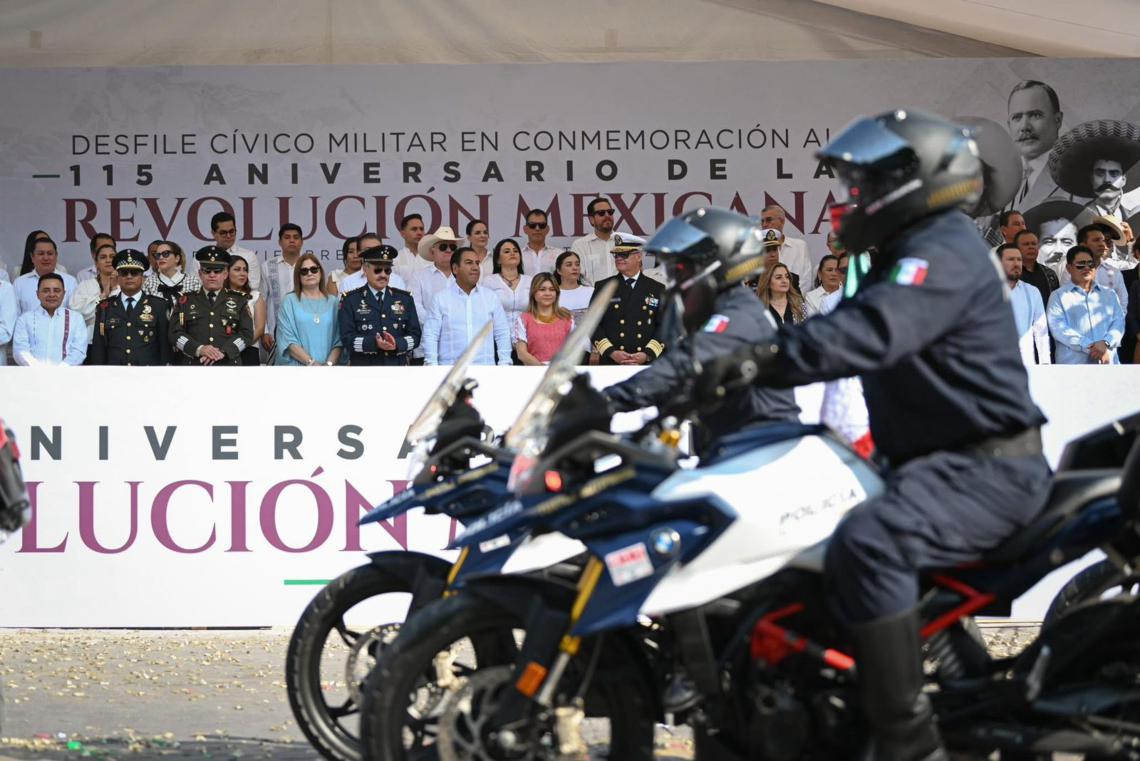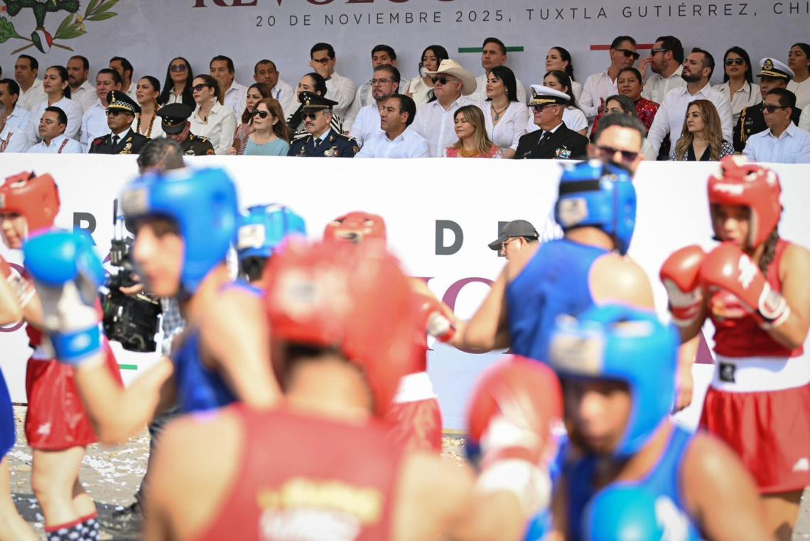 Acompañado de cientos de familias chiapanecas que se reunieron a lo largo de la Avenida Central de Tuxtla Gutiérrez, el gobernador Eduardo Ramírez Aguilar presenció el Desfile Cívico Militar con motivo del 115 Aniversario de la Revolución Mexicana, una conmemoración que reafirma la identidad nacional y el respeto por la historia, así como los ideales de justicia y libertad que evocan el legado de las heroínas y los héroes de esta gesta.