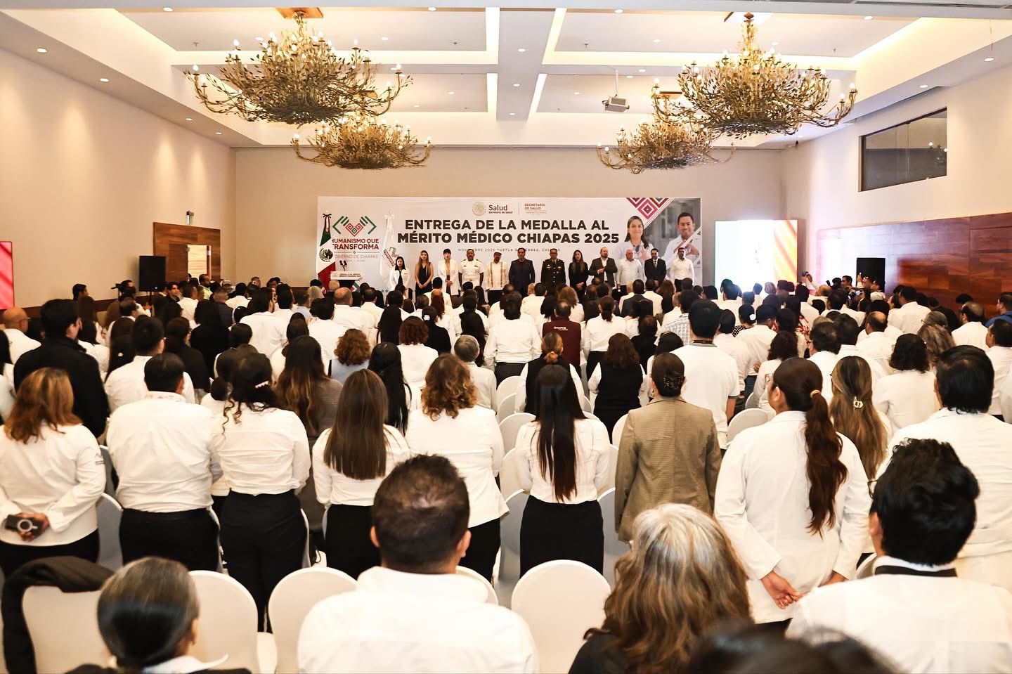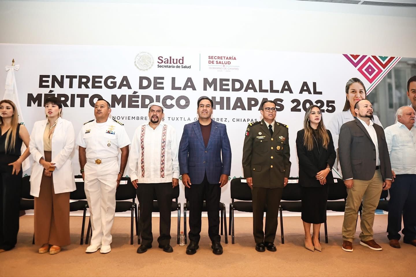 El gobernador Eduardo Ramírez Aguilar encabezó la entrega de la Medalla al Mérito Médico Chiapas 2025 al doctor Salvador Pacheco Segura, a quien describió como un hombre íntegro y patriota que, mediante su labor, llevó esperanza y mejor calidad de vida a la población más necesitada en distintas regiones del estado.