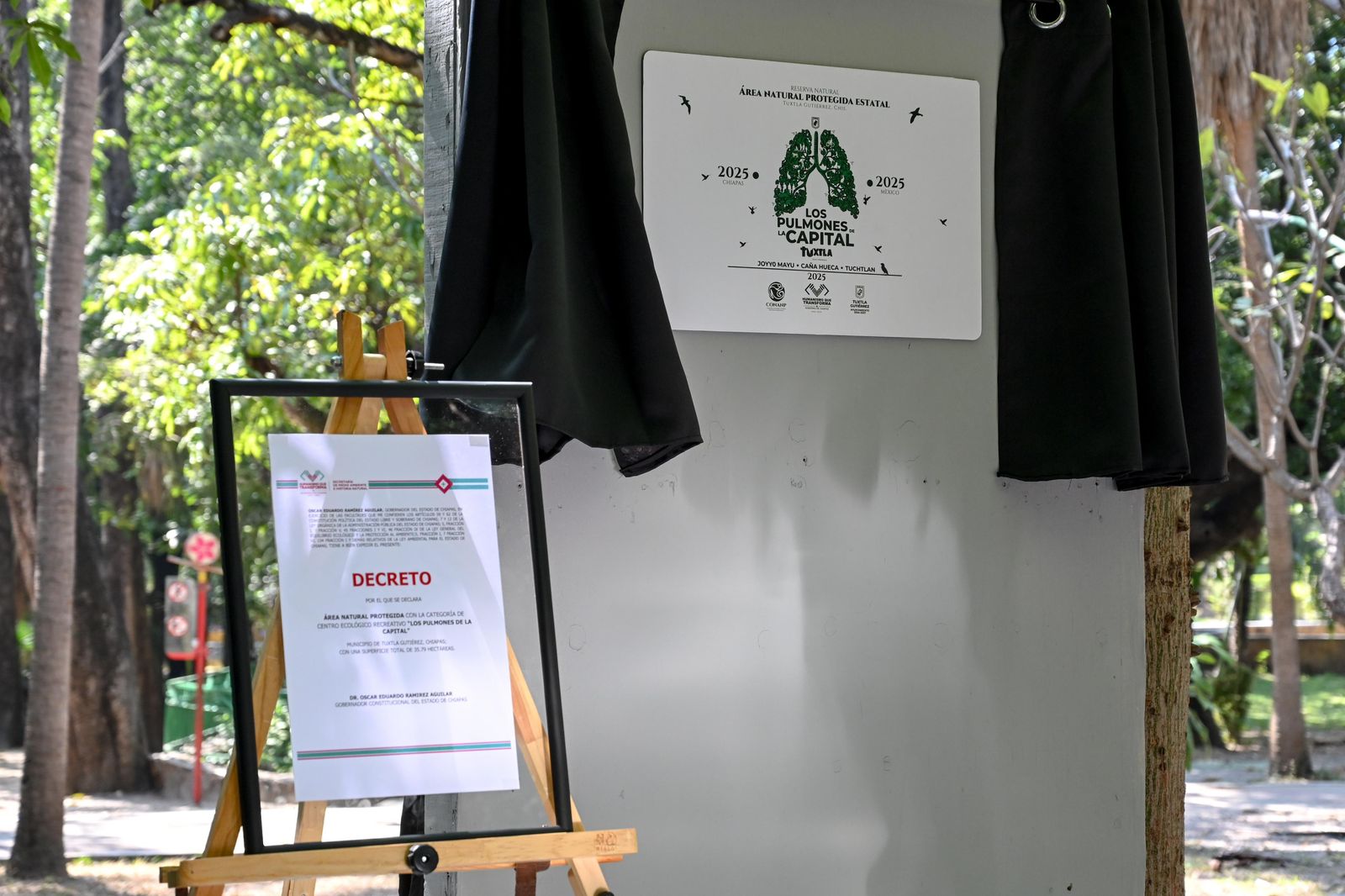 El gobernador Eduardo Ramírez Aguilar firmó el decreto de declaratoria de Área Natural Protegida, con la categoría de Centro Ecológico Recreativo “Los Pulmones de la Capital”, para los parques Caña Hueca, Joyyo Mayu y Tuchtlán, en Tuxtla Gutiérrez, con una superficie total de 35.79 hectáreas. Señaló que este acto reafirma el compromiso del gobierno de la Nueva ERA con el buen vivir y con una gestión pública basada en la empatía, el respeto y la conciencia hacia el cuidado de la madre tierra.