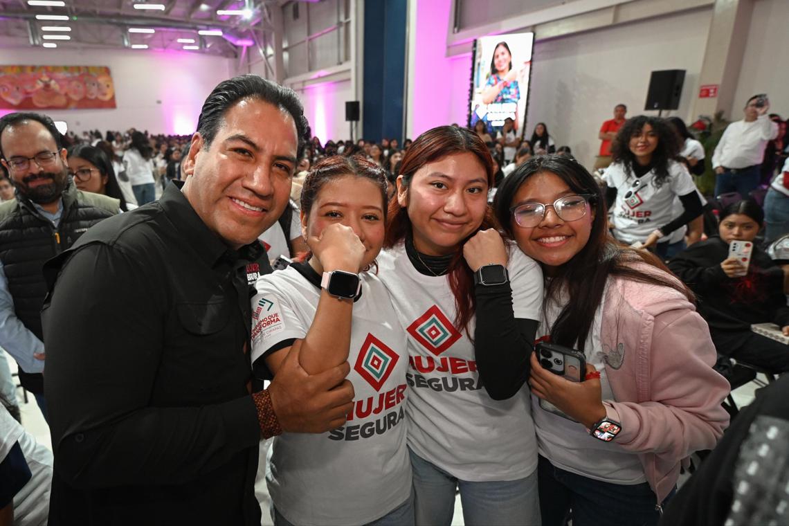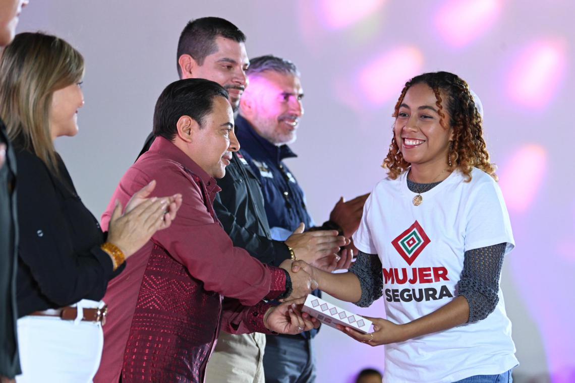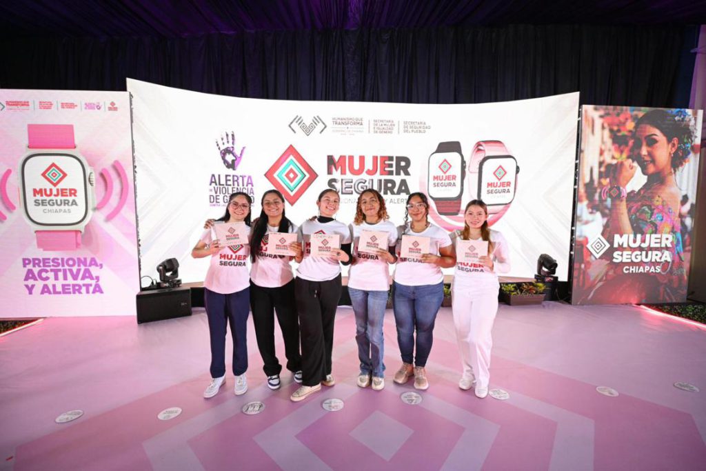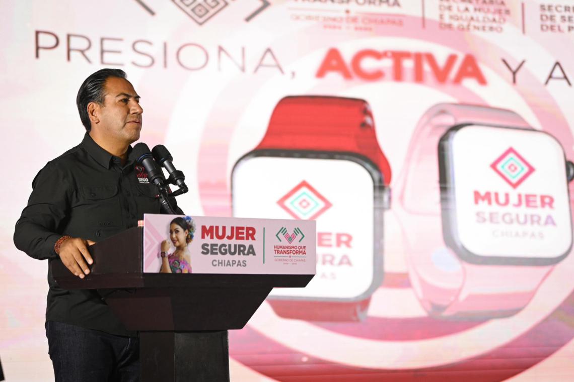 El gobernador Eduardo Ramírez Aguilar encabezó el arranque del programa Mujer Segura: Presiona, Activa, Alerta, que dota a mujeres de relojes inteligentes conectados permanentemente al C5, lo que permitirá brindar atención inmediata ante situaciones de riesgo. Destacó que Chiapas es el primer estado del país y de América en implementar una estrategia de este tipo, y subrayó que el Gobierno de la Nueva ERA impulsa acciones que fomentan la participación social para construir un Chiapas libre de violencias contra niñas, adolescentes y mujeres.