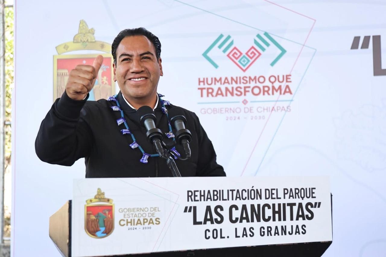 En Tuxtla Gutiérrez, el gobernador Eduardo Ramírez Aguilar encabezó el inicio del programa Transformando mi Espacio con Humanismo, con el arranque de los trabajos de rehabilitación del parque Las Canchitas, ubicado en la colonia Las Granjas. En el acto, destacó que el gobierno de la Nueva ERA promueve el mejoramiento integral de los espacios públicos como una vía para fortalecer la paz, el bienestar y el tejido social.
