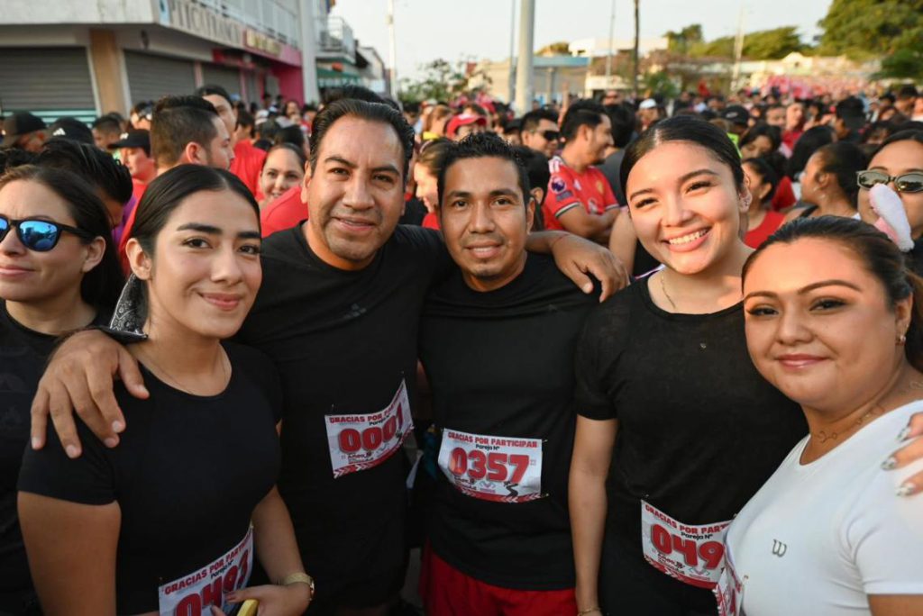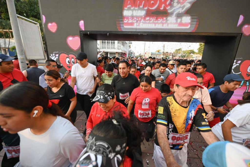 En un ambiente de alegría y fraternidad, el gobernador Eduardo Ramírez Aguilar, acompañado por su familia, participó en la segunda edición de la carrera con causa “Para el amor no hay obstáculos”, realizada en el municipio de Tapachula. Al concluir el recorrido, el mandatario felicitó a Yazmín Ramírez y a las y los jóvenes que hicieron posible la actividad, y reconoció su dedicación y compromiso en la organización del evento deportivo. Destacó que este tipo de iniciativas no solo impulsan el deporte y la sana recreación, sino que también fomentan la participación social, fortalecen la unidad y promueven el amor al prójimo.