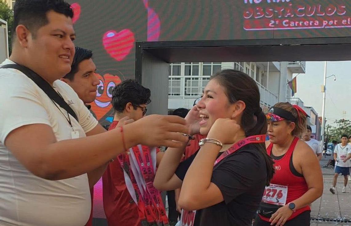En un ambiente de alegría y fraternidad, el gobernador Eduardo Ramírez Aguilar, acompañado por su familia, participó en la segunda edición de la carrera con causa “Para el amor no hay obstáculos”, realizada en el municipio de Tapachula. Al concluir el recorrido, el mandatario felicitó a Yazmín Ramírez y a las y los jóvenes que hicieron posible la actividad, y reconoció su dedicación y compromiso en la organización del evento deportivo. Destacó que este tipo de iniciativas no solo impulsan el deporte y la sana recreación, sino que también fomentan la participación social, fortalecen la unidad y promueven el amor al prójimo.