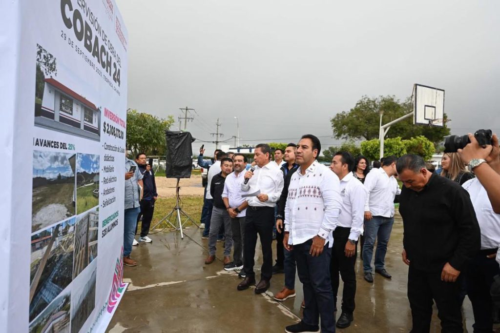 Acompañado de Sofía Espinoza Abarca, inauguró espacios en la Secundaria José Antonio Gutiérrez con una inversión de 2.5 millones de pesos, en beneficio de 225 estudiantes; y supervisó la construcción de infraestructura en el Colegio de Bachilleres de Chiapas Plantel 24, con más de 2.1 millones de pesos destinados para favorecer a 528 alumnas y alumnos.