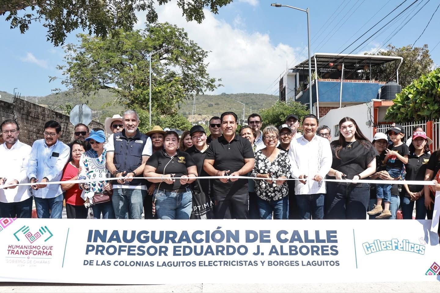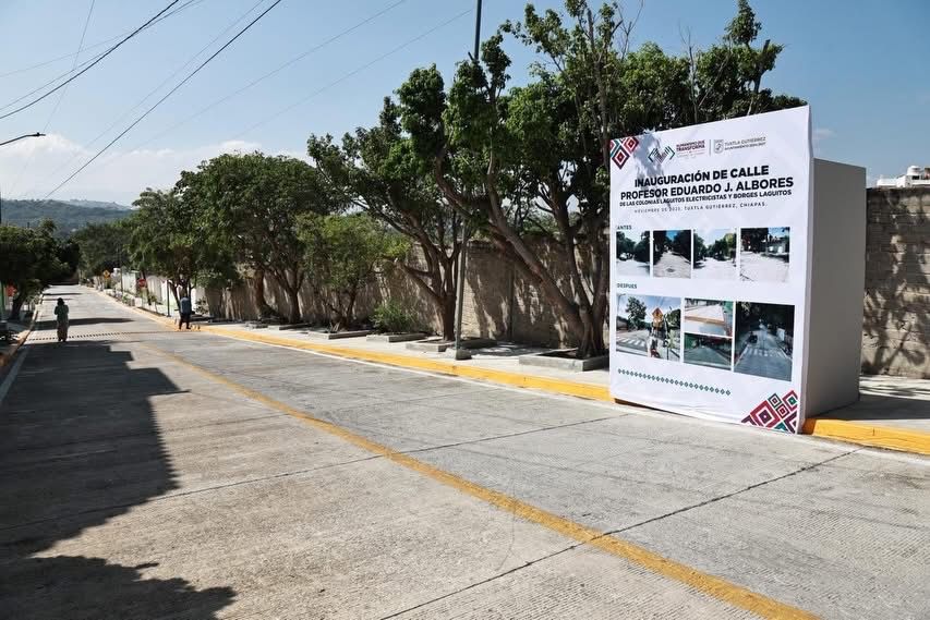 En Tuxtla Gutiérrez, el gobernador Eduardo Ramírez Aguilar y el presidente municipal, Angel Torres Culebro, realizaron la inauguración de la rehabilitación integral y modernización de la calle Profesor Eduardo J. Albores, una obra que beneficiará a habitantes de las colonias Laguitos Electricistas y Borges Laguitos.